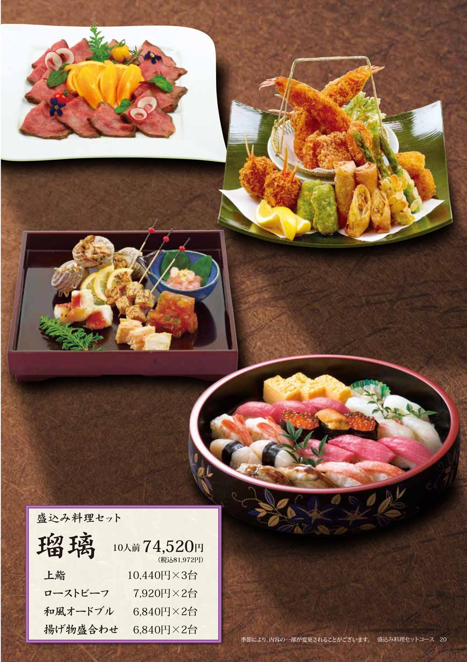 | 5人前:21,600円(税込23,760円) |