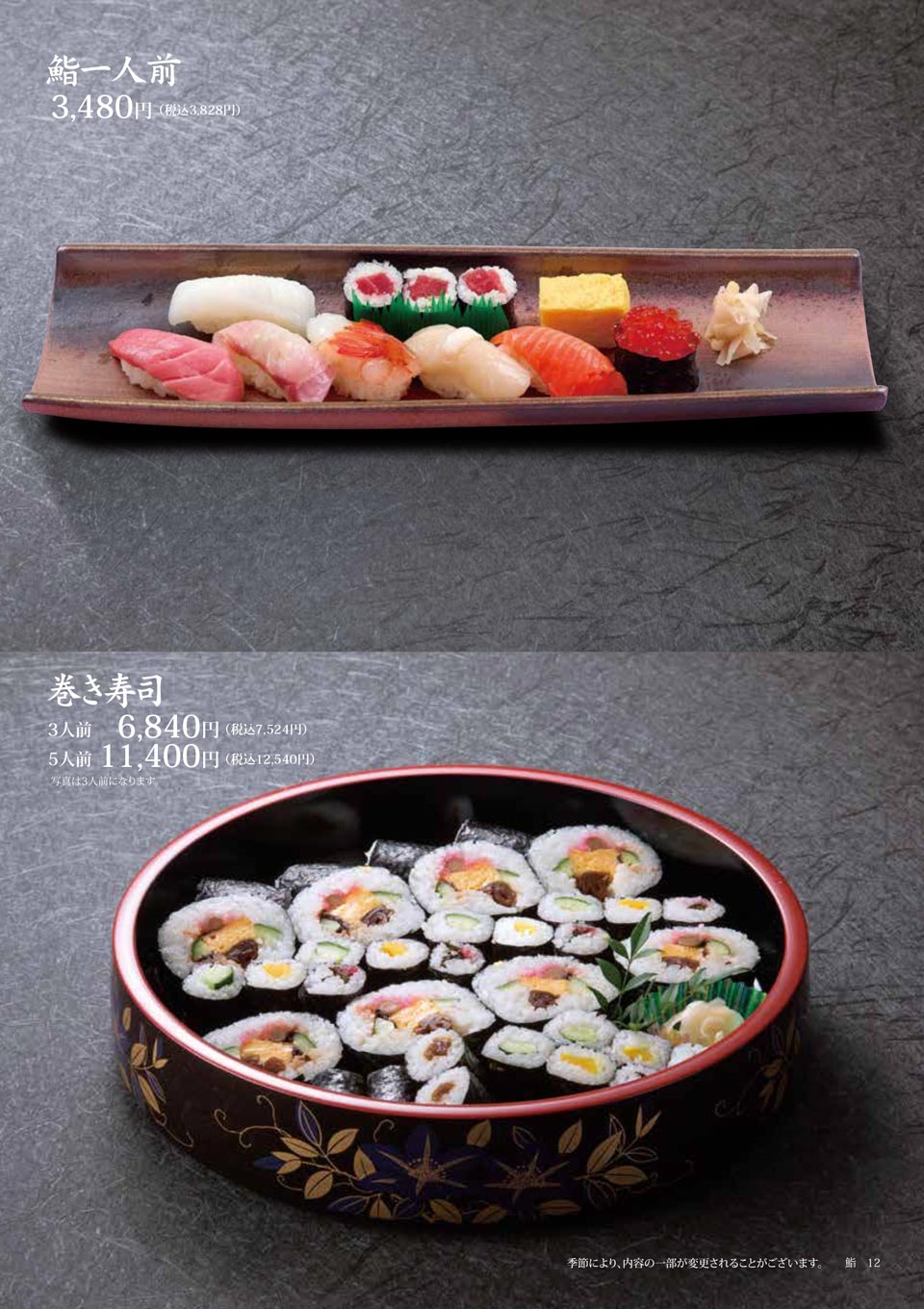 | 巻き寿司 | 3人前:6,840円(税込7,524円) |