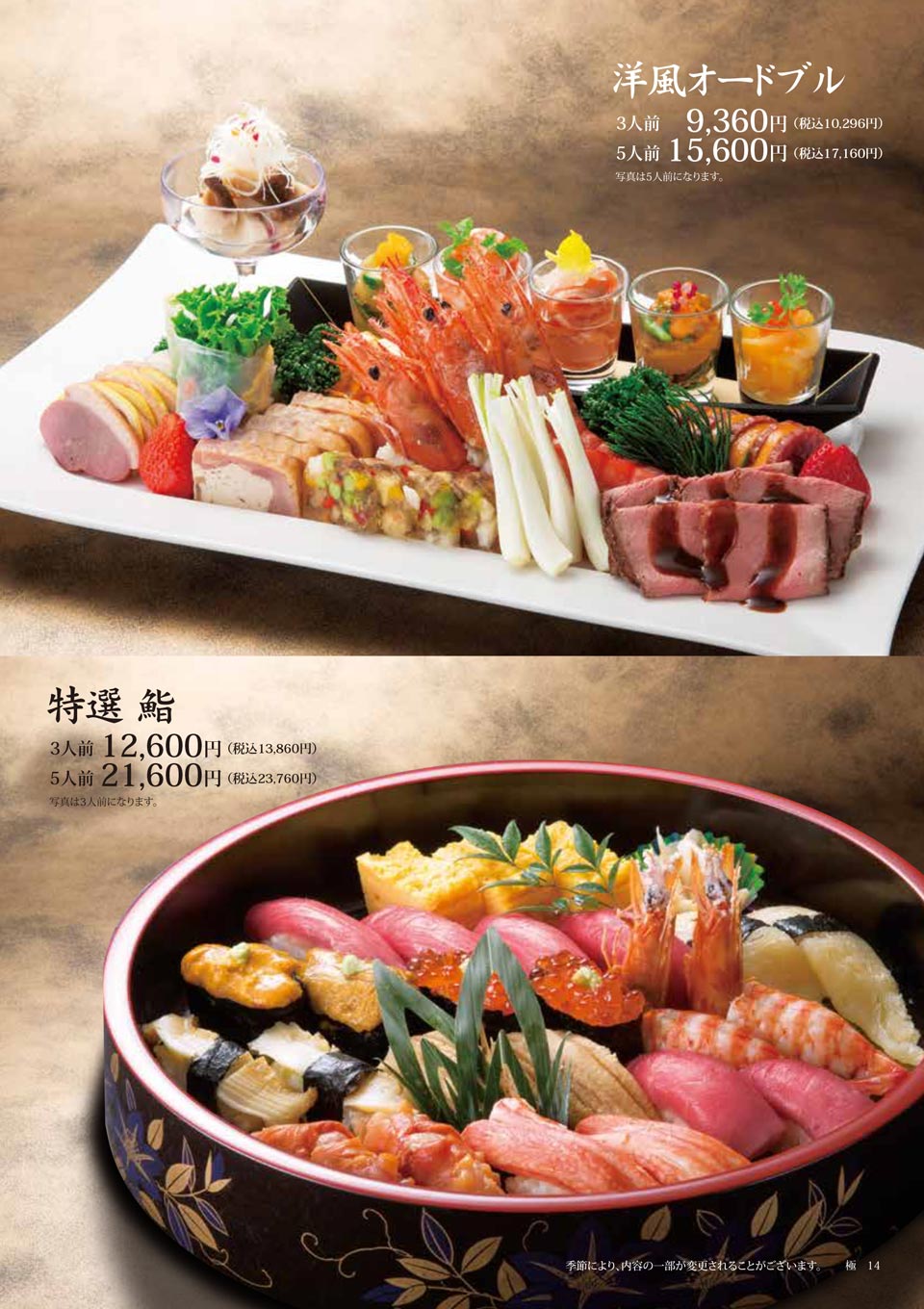 | 特選 鮨 | 3人前:12,600円(税込13,860円) |