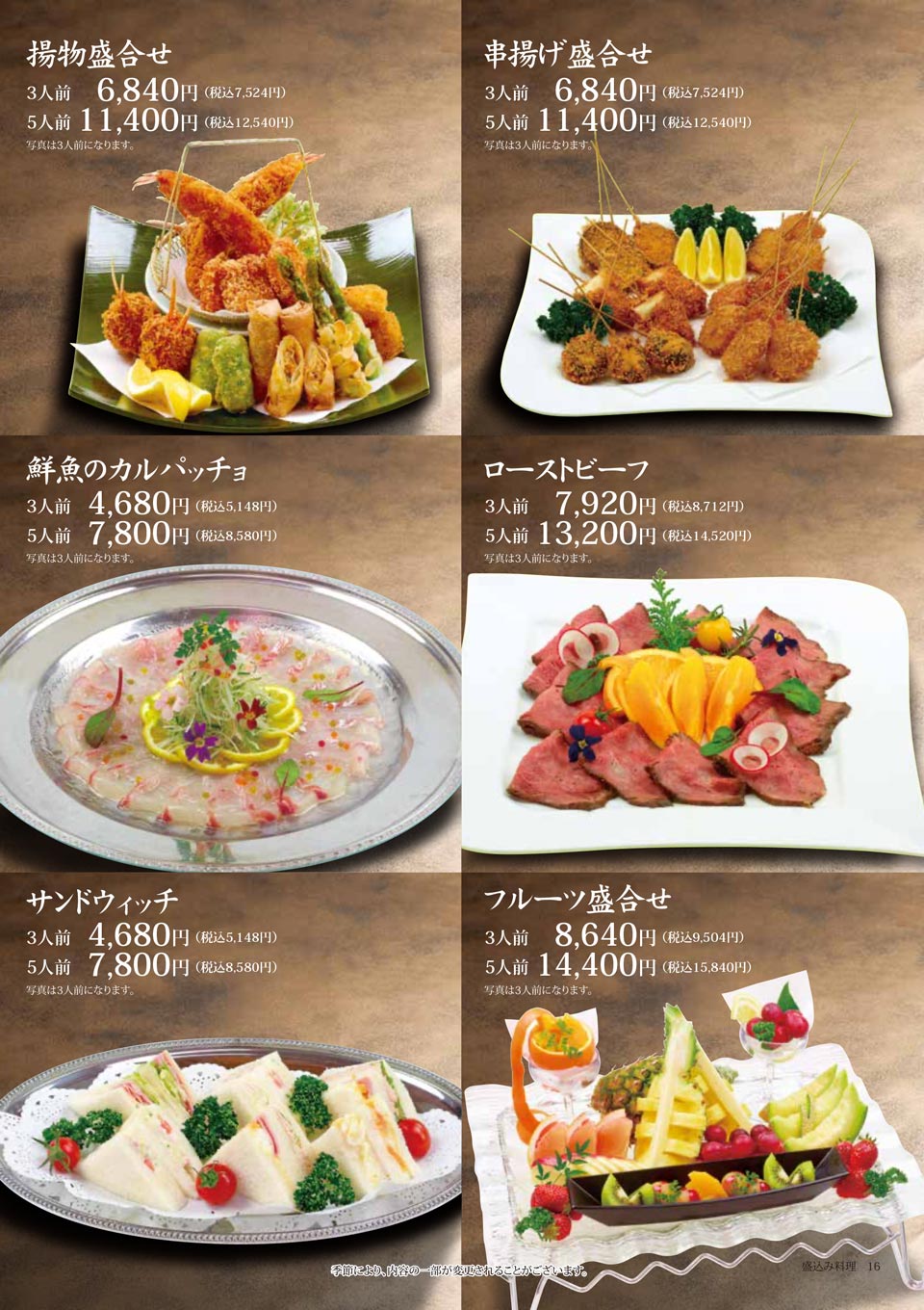 | 5人前:15,000円(税込16,500円) |